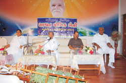 Addressing the annual meeting of the Agriculture and Rural Development Wing at Palampur (Himachal Pradesh) is Bro. Shanta Kumar ji, Member of Parliament (Rajya Sabha) & Ex-chief Minister of Himachal Pradesh addressing a gathering of 150 members of the Wing. Eminent personalities sharing the Dias are B.K. Sarla Didi Ji (National Co-ordinator : RDW), B.K. Raju (HQ Co-ordinator), B.K. Narayanbhai.