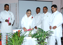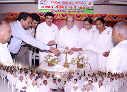 Lightening candles at the Inaugural Program of Kisan Sashaktikaran Mahasammelan (Conference to Empower Farmers) are MLA Chiman Aabhaji, National Co-ordinator of Agriculture and Rural Development Wing BK Sarla Ji, BK Minakshi, BK Mira along with other Agriculture and Rural Development Wing Members. About 2000 farmers and eminent personalities representing Agricultural Community attended this conference.