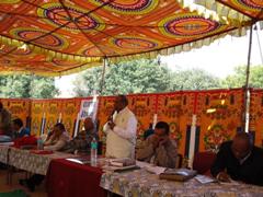 HQ Co-ordinator of the Agriculture and Rural Development Wing BK Raju introducing Shaswat Yogic agriculture, addressing a gathering of 200 villagers and the officers representing all departments of district administration at Khiwada Village (Rani). Senior Divisional Magistrate Bro.Mohansingh Rajpurohit, Village Development Officer Bro.Budharam Parihar, Ayurvedic Doctor Bro.Dr.Mahesh, BK Sumanth and various other dignitaries attended this program. Sis.Sonu Incharge of Brahma Kumaris Rani Center successfully presided this program.