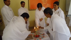 Lightening the candles at the Rural Youth Empowerment Project Trainers training program are BK Geeta, BK Suman and BK Sangeeta along with the BK Brothers and Sisters.