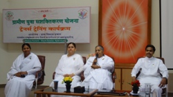 Under the theme of Empowering Rural India, Brahmakumaris, Agriculture and Rural Development Wing was also invited to participate and make presentation on Holistic Rural development approach as well as on the topic “Shaswat Yogic Agriculture Project”- a new and innovative alternative for Uniting Human Nature and Environment (Nature) for Agriculture. This is a new and innovative approach facilitating sustainable agriculture for improving quality and quantity of agriculture produce without application of hazardous chemicals in the name of Fertilizers as well as Insecticides and Pesticides. Yogic Farming systems enables organic farming and supplements the system with Micro energy in the form of Mind Power of farmers. This is a unique way of harmonizing with mother nature and also five elements to utilize the natural resources in a sustainable way. (For detailed information on Sustainable Yogic Farming visit www.Yogickheti.org)