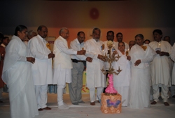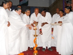 After Lightening the candles at the Inaugural Session of the Annual meeting Dadi Ratanmohiniji, Sis. BK Sarla(Co-ordinator) and Bro. BK Raju (Hq. Co-ordinator) were seen in high spirits.