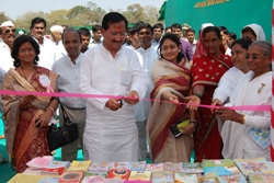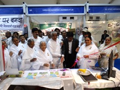 Inaugurating the Sustainable yogic Agriculture exhbition stall at the "Shiv Ratna Krishi-2014" is former deputy chief minister of Maharastra,Bro.Vijay Singh Mahite Patil, BK Somprabha, BK Nanda, BK Shrikant with others. Awareness is brought among thousands of farmers through Sustainable Yogic Agriculture exhibition.