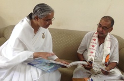 BK Satveer & Sis. BK Swati from Delhi B.K.Sis.Sapna explaining about the Sustainable Yogic Agriculture Project to the Union Minister for Agriculture Bro. Radha Mohan Singh. She extended an invitation to the retreat to be held at Gyan Sarovar on “Spiritual and Natural Resources for Holistic Rural Development”.